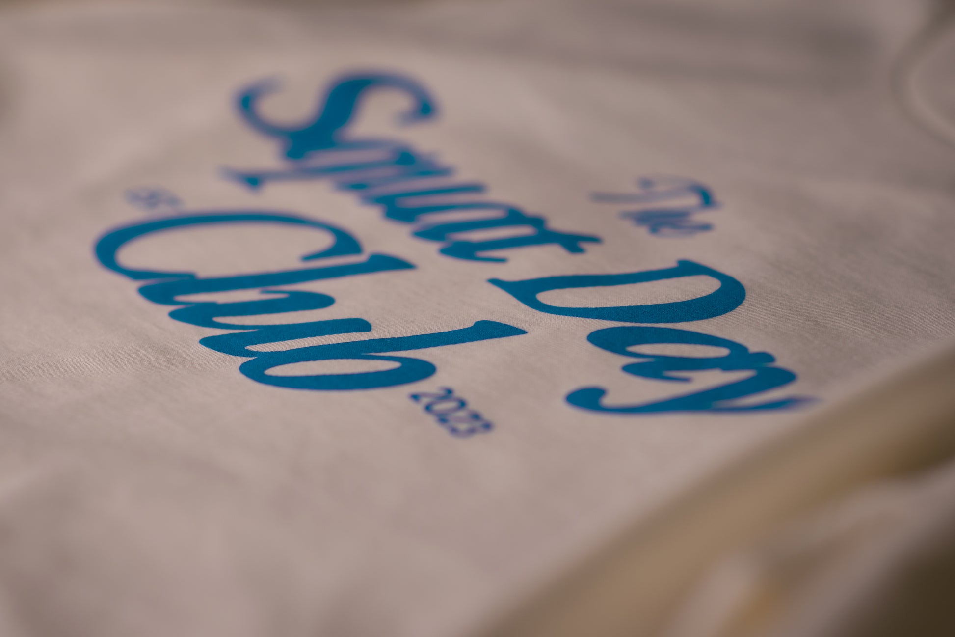 Own your strength with the Squat Day Club tee. This cream coloured essential features bold light royal blue ink and a buttery-soft feel that moves with you. Whether you're crushing PRs in the gym or turning heads on the street. It's the kind of shirt that works as hard as you do, pairing seamlessly with any vibe. Comfort meets attitude in one versatile piece.