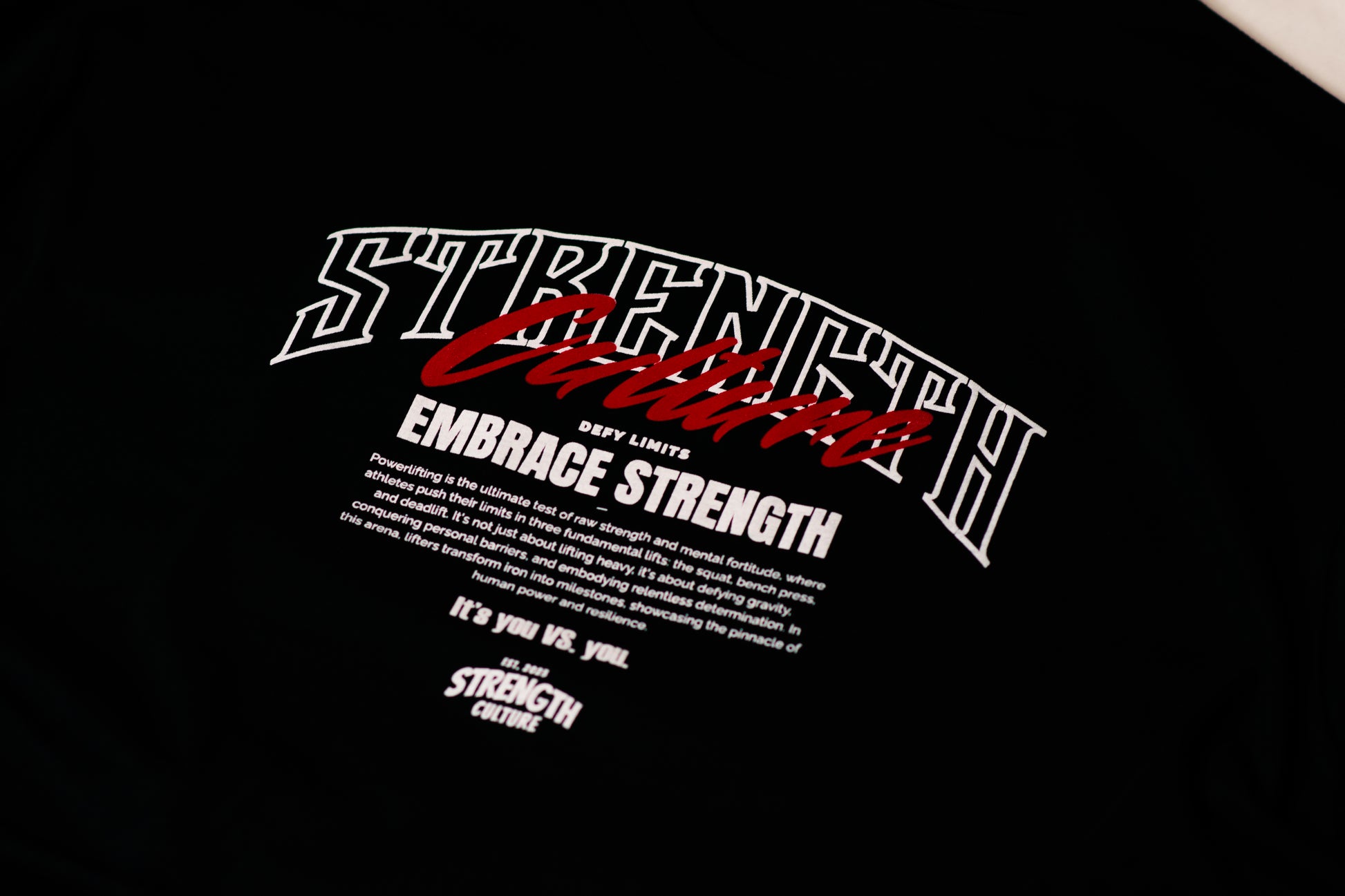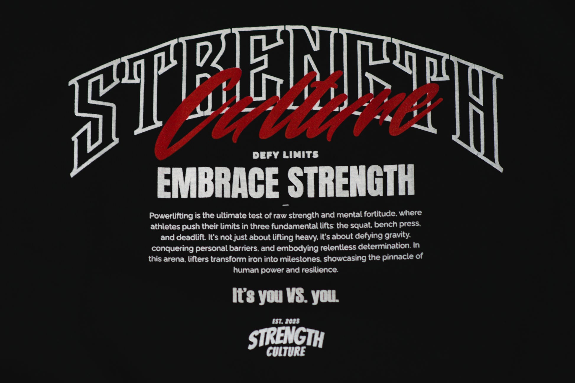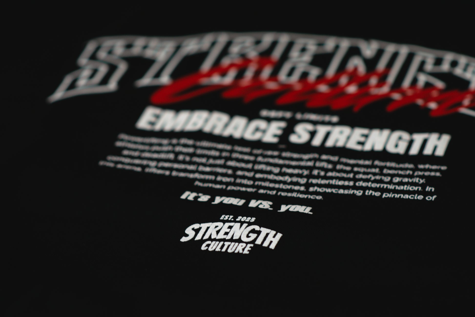 Introducing the You VS. You powerlifting tee, exclusively from Strength Culture. Featuring a crisp white and red screen printed design, this limited edition tee is a true testament to those who defy limits and embrace strength. Crafted for the dedicated, it's not just a shirt but a statement reminding you that your biggest competitor is yourself. Stand out in and out of the gym with the ultimate Strength Culture Staple Tee, and show the world what it means to truly push boundaries. Don’t miss out on this essential piece for your fitness inspired streetwear collection.